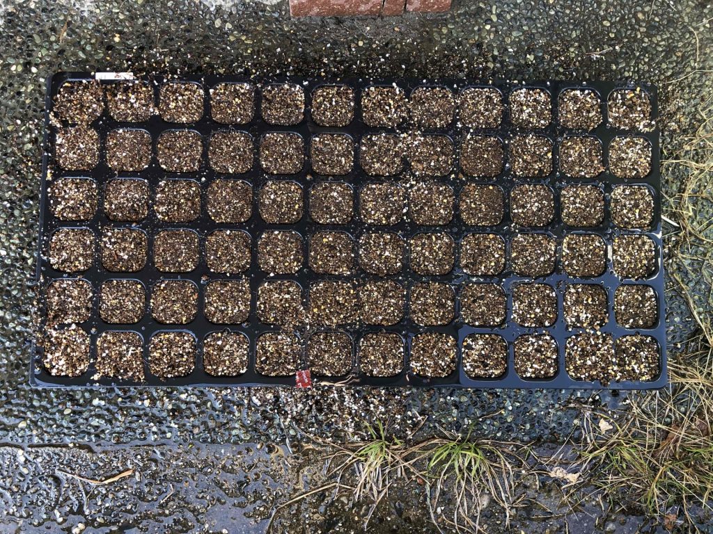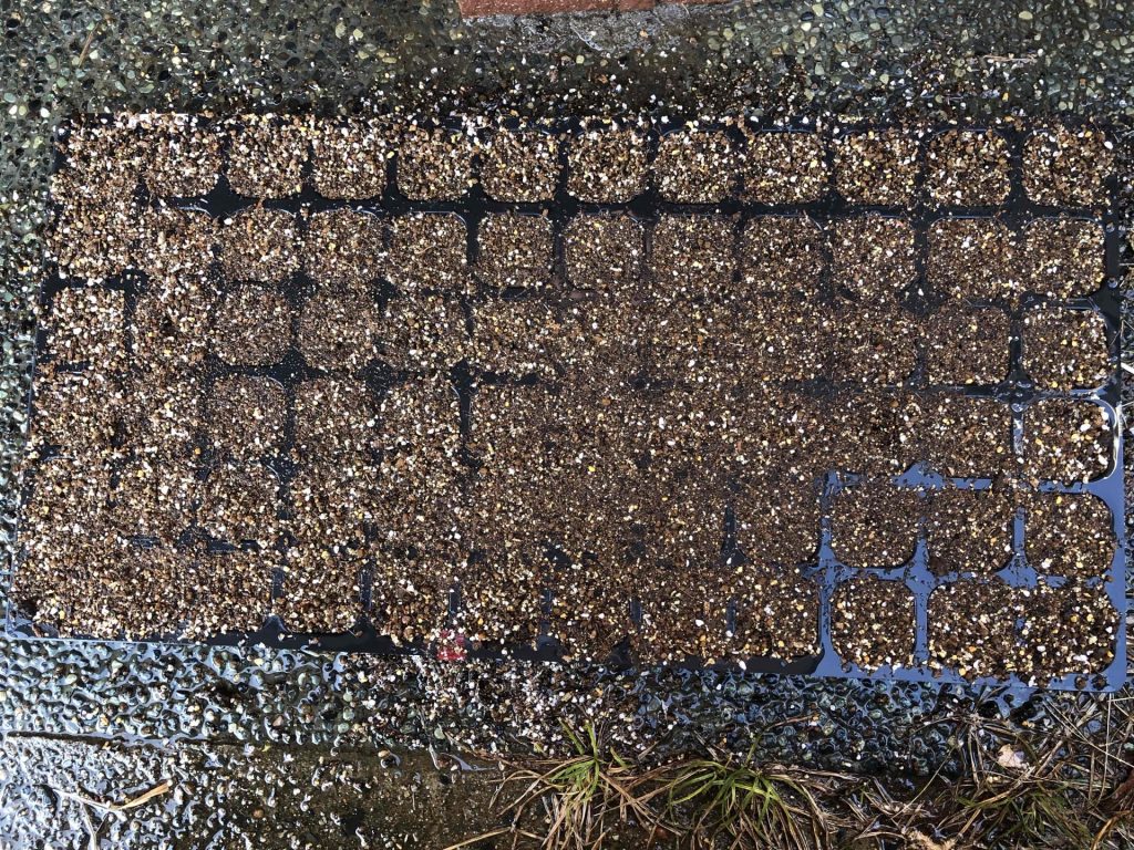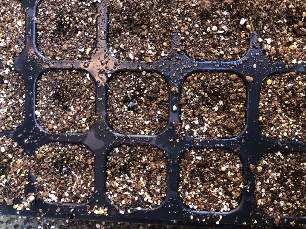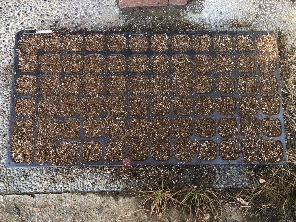 72穴のセルトレーに培土をなるべく均等にふわっとのせます。