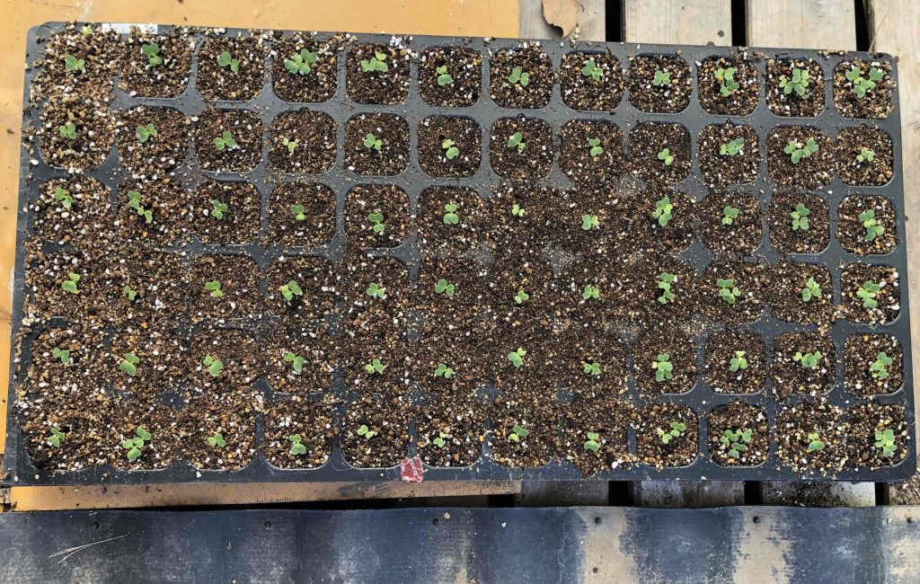 水やりもやって、均一に成長するようにセルトレーの向きを変えました。