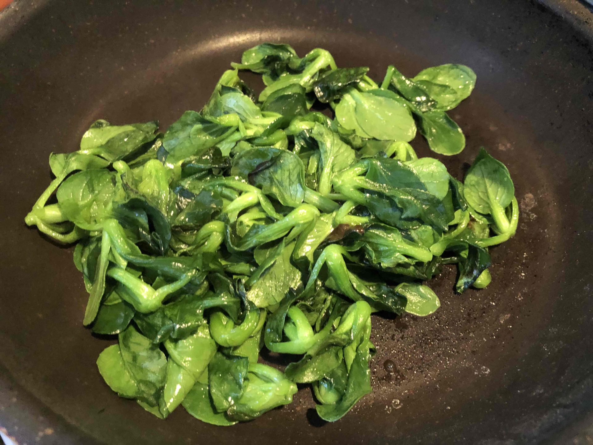 ニンニクをごま油で熱して青菜炒めにして食べました!